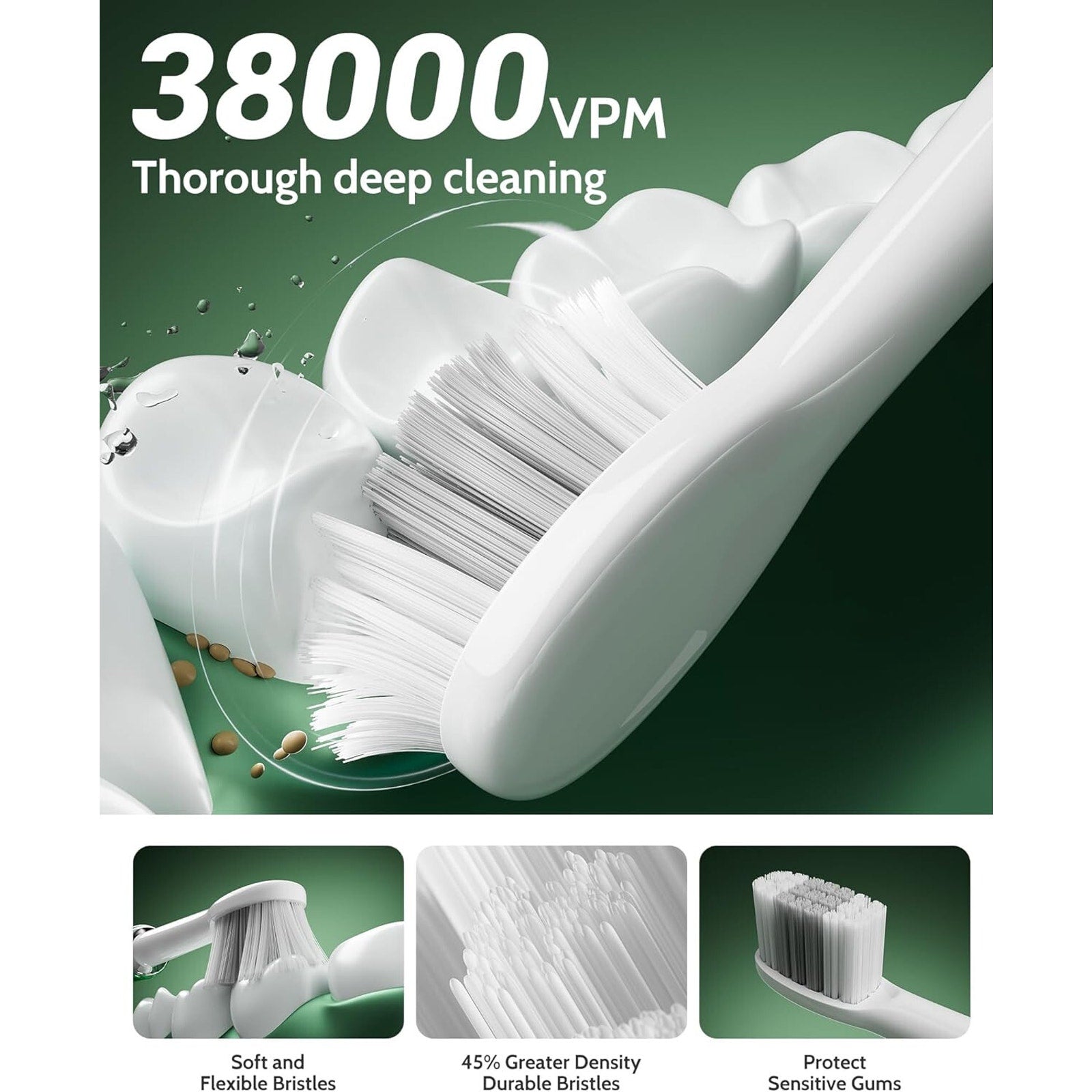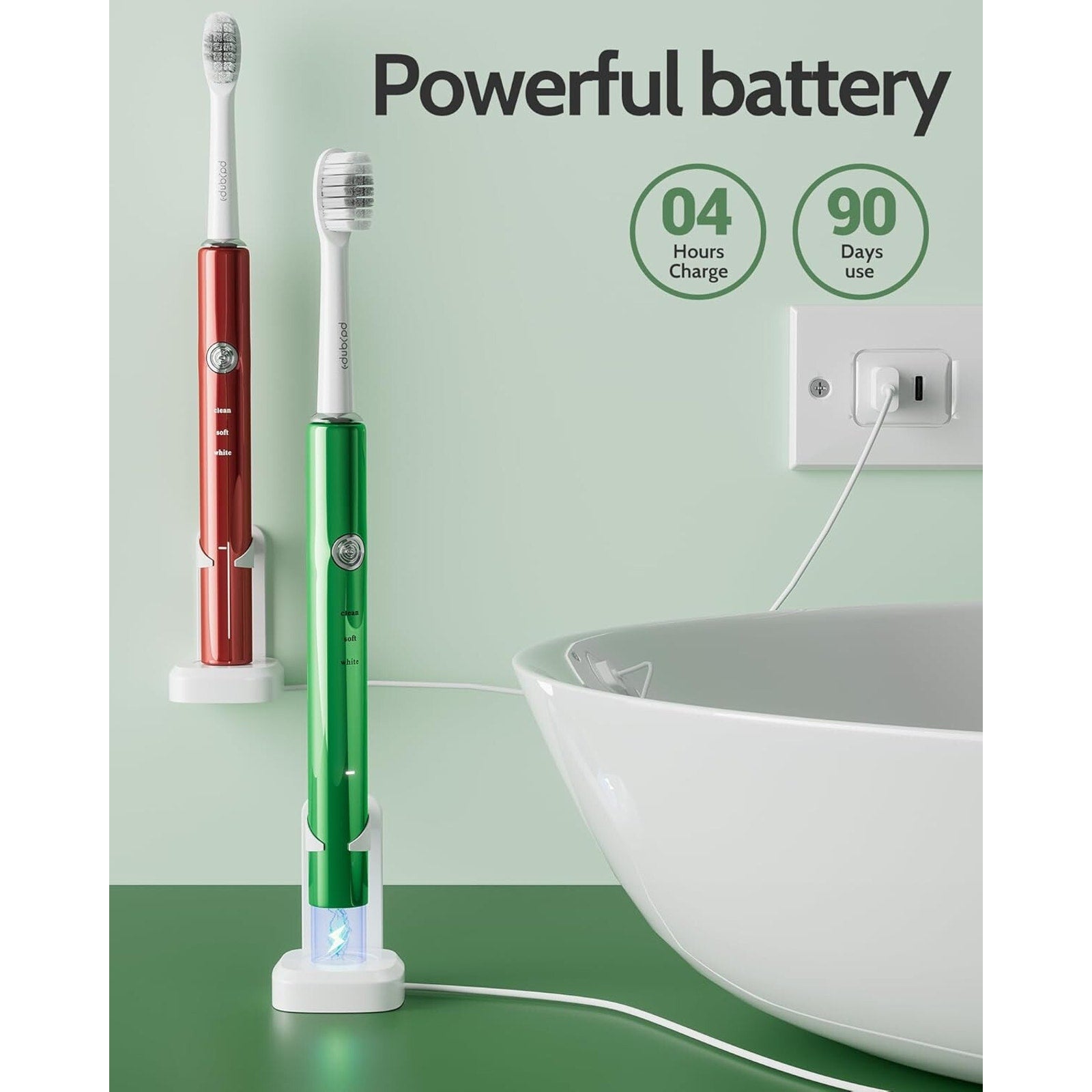 2 PACK SONIC ELECTRIC TOOTHBRUSHES WITH 10 BRUSH HEADS, SUITABLE FOR ADULTS AND CHILDREN, LONG 90-DAY BATTERY LIFE, 3 MODES, IPX7 WATERPROOF, SMART 2-MINUTE TIMER (GREEN & RED).