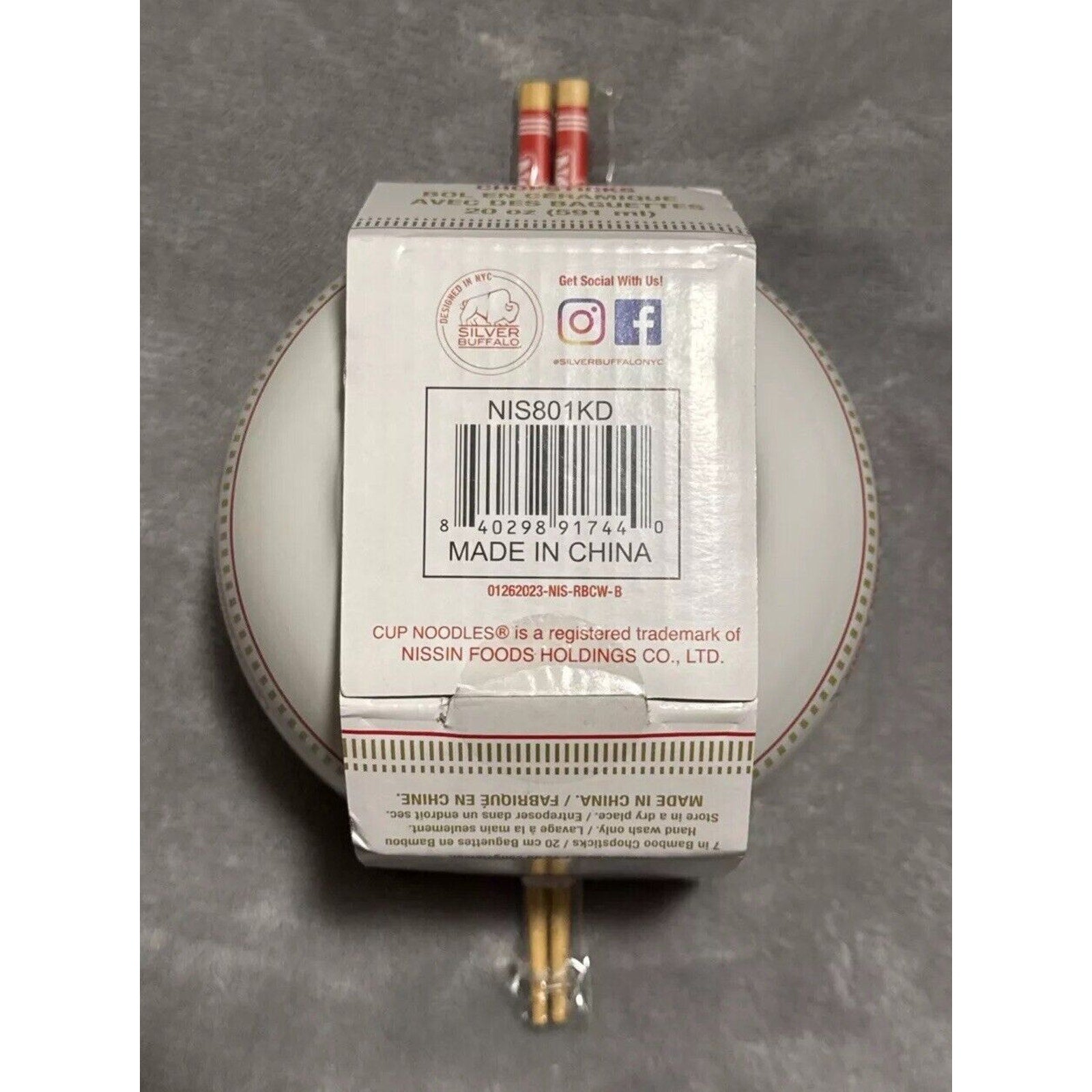 20 oz Cup Noodles Ceramic Bowl & Matching Chopsticks.