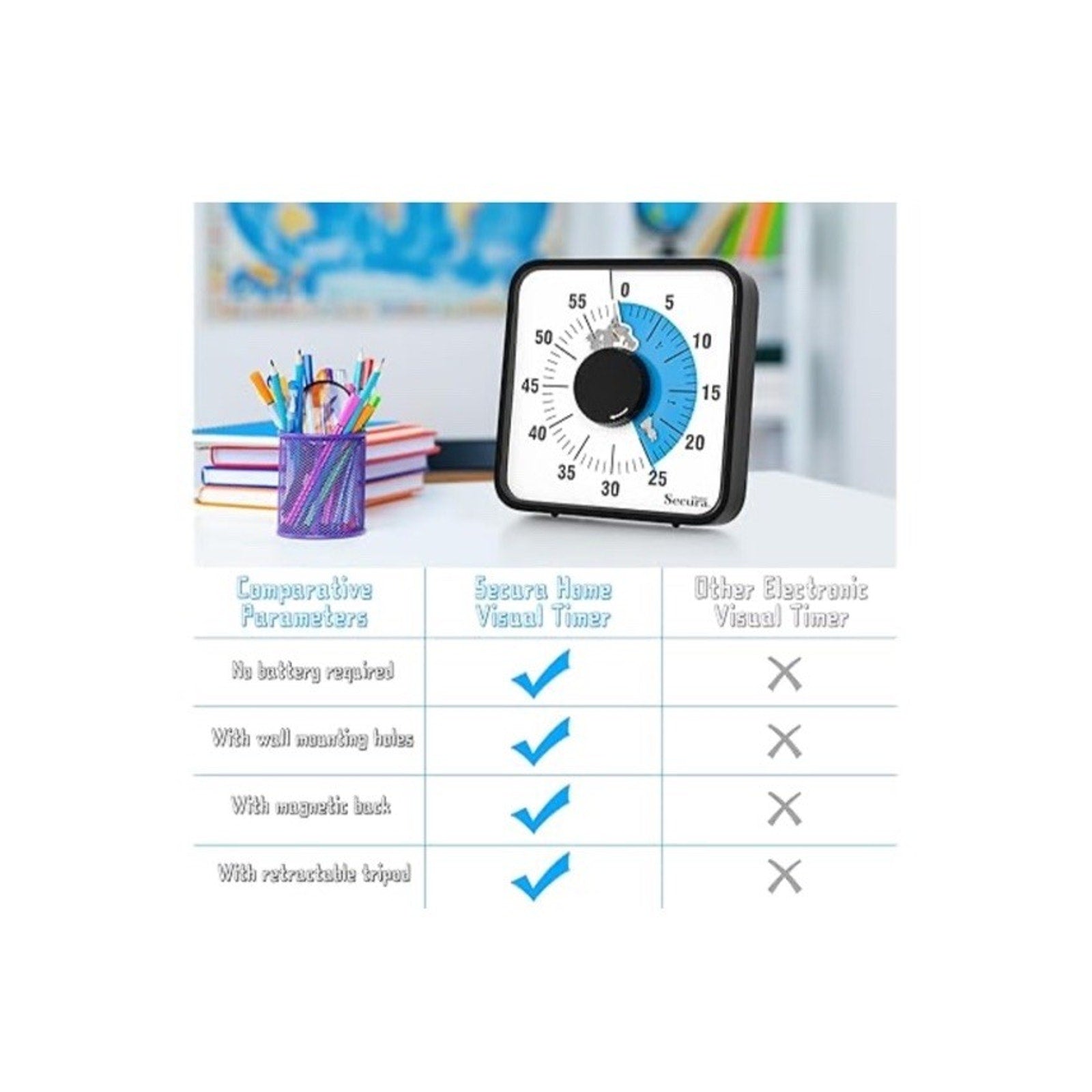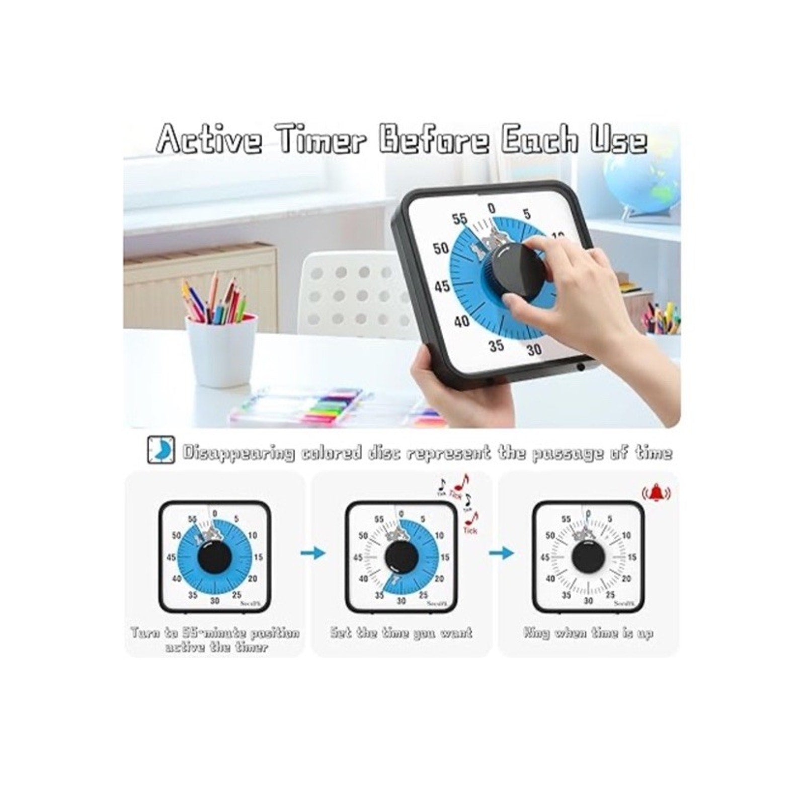 Secura 60-Minute Visual Countdown Timer 7.5" Oversize Visual Timer.