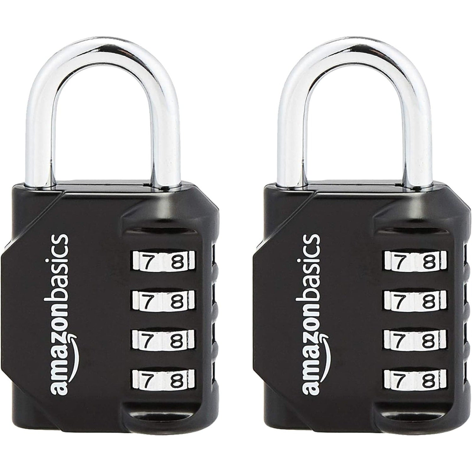 AMAZON BASICS 4-DIGIT COMBINATION LOCK, BLACK, 2-PACK.