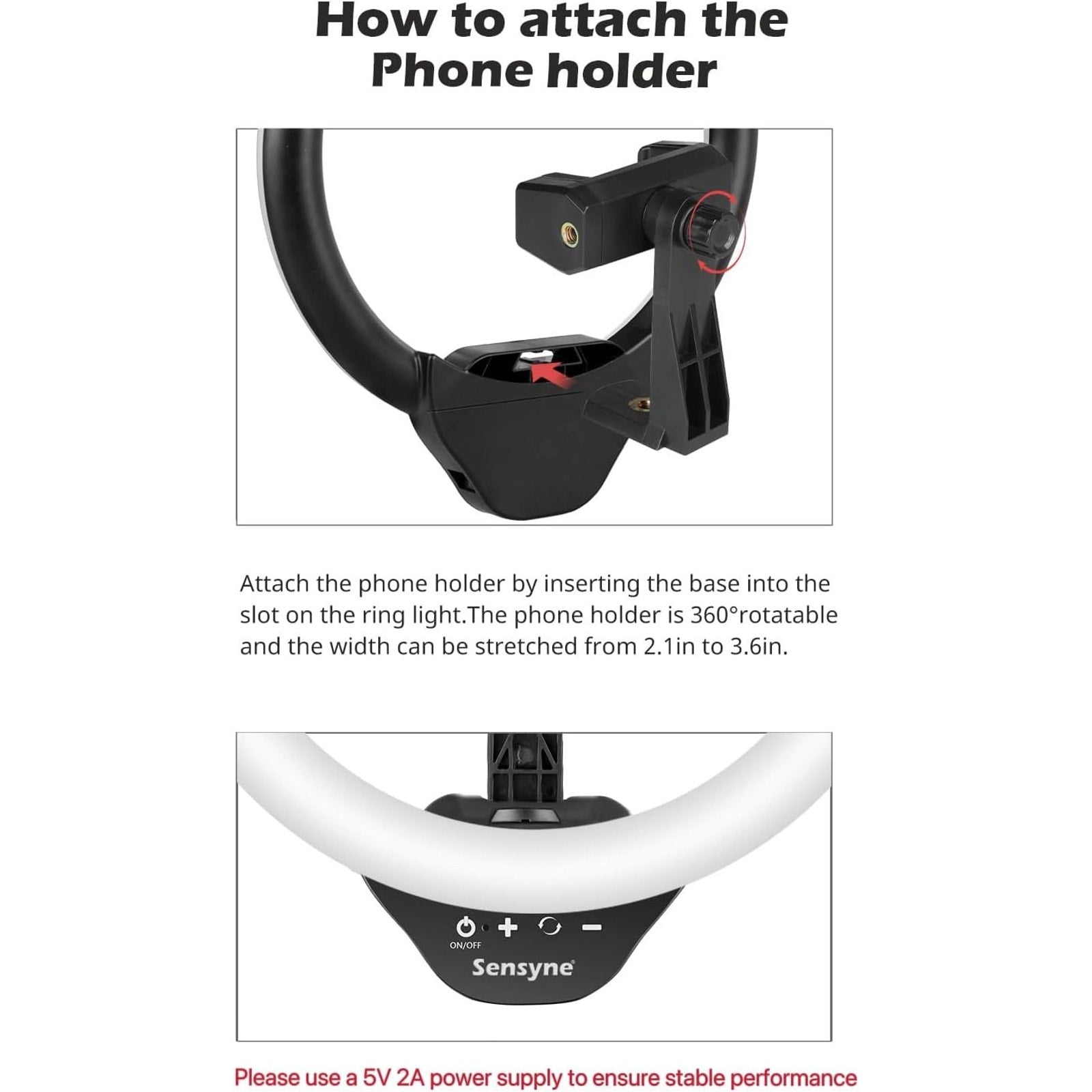 SENSYNE 10'' RING LIGHT WITH 50'' EXTENDABLE TRIPOD STAND, LED CIRCLE LIGHTS WITH PHONE HOLDER FOR LIVE STREAM/MAKEUP/YOUTUBE VIDEO/TIKTOK, COMPATIBLE WITH ALL PHONES.