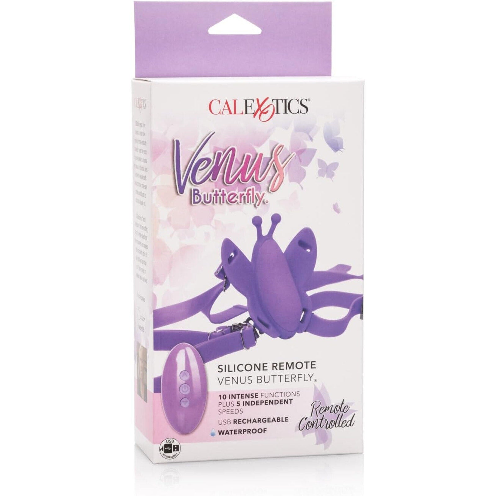 CALEXOTICS VENUS BUTTERFLY SILICONE REMOTE WIRELESS MICRO BUTTERFLY – WATERPROOF HANDS FREE STRAP ON PERSONAL MASSAGER WITH CONTROLLER – ADULT VIBRATOR SEX TOY FOR COUPLES - PURPLE.