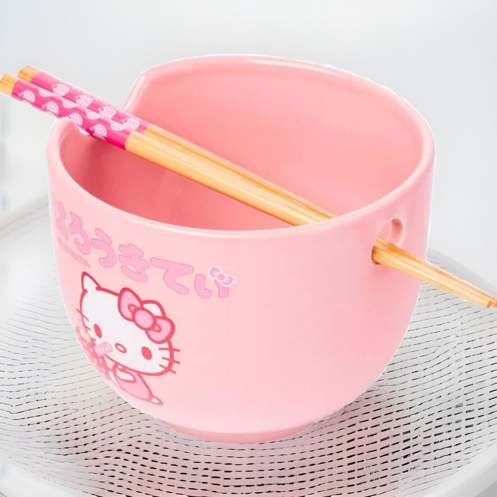 🔥Silver Buffalo Hello Kitty Strawberry Milk Ceramic Ramen Bowl with Chopsticks